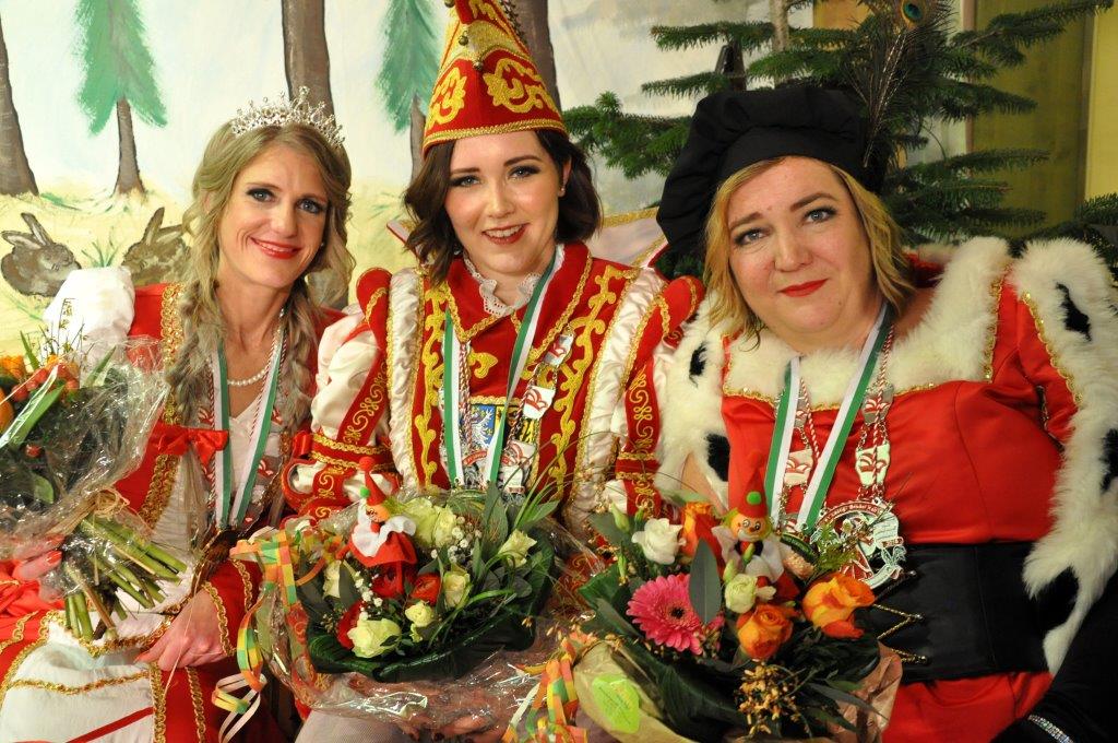 Damen Dreigestirn: Prinz Ina I.(Teuber-Künnecke), Jungfrau Anika I. (Engels) und Bauer Simone I. (Saßmann)