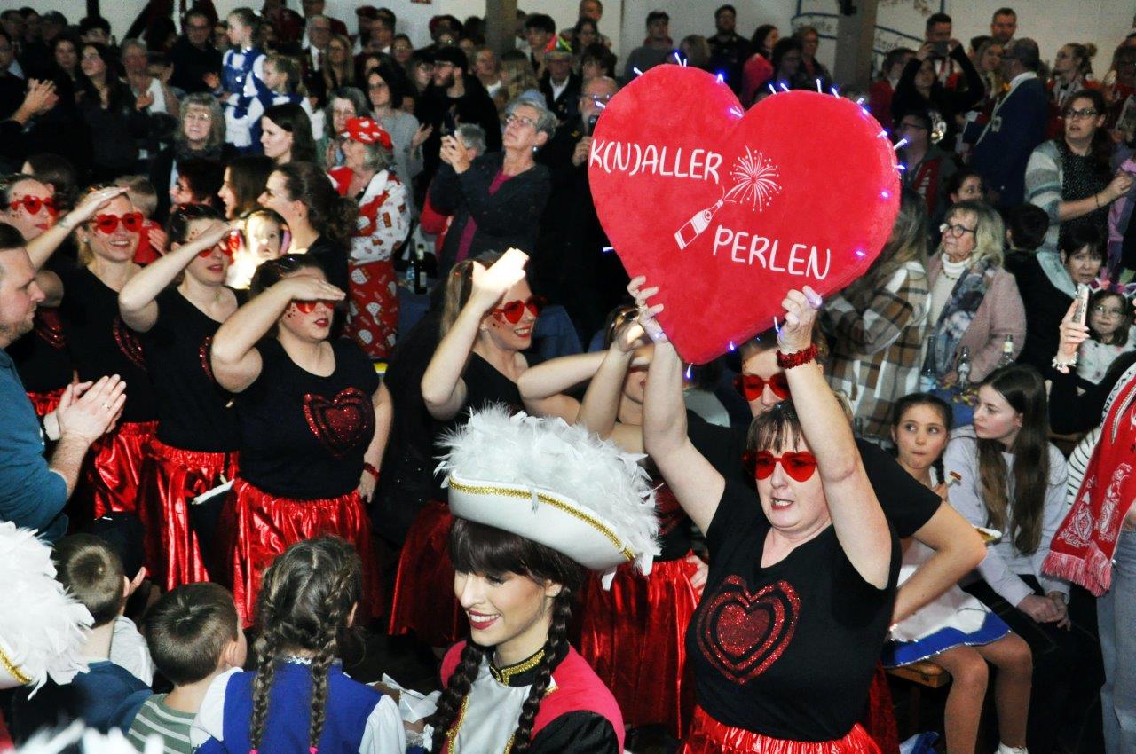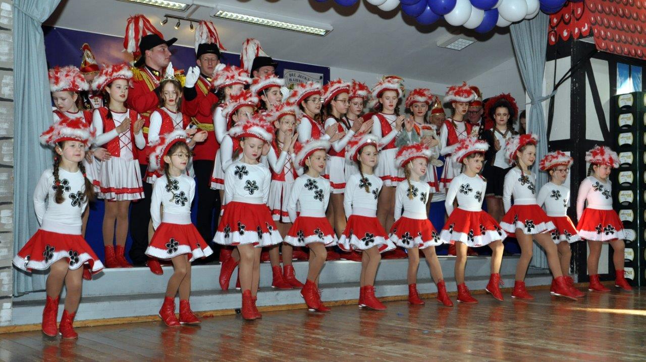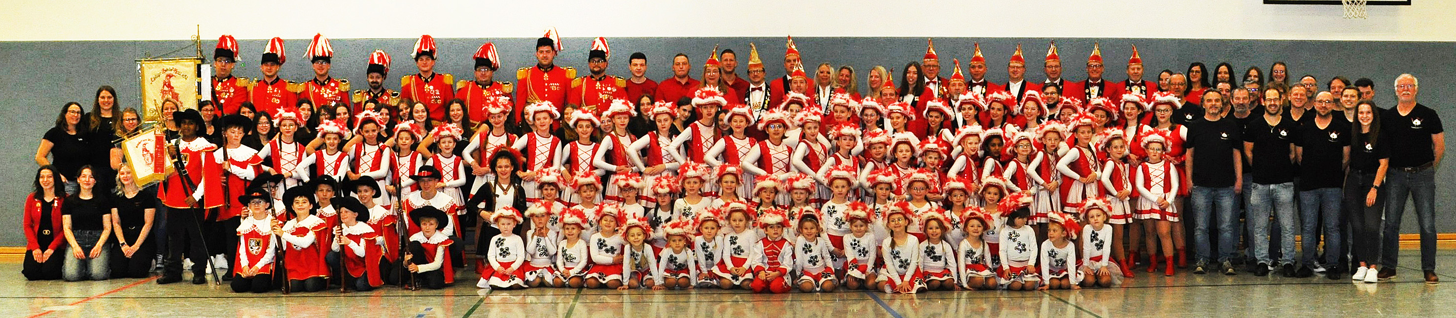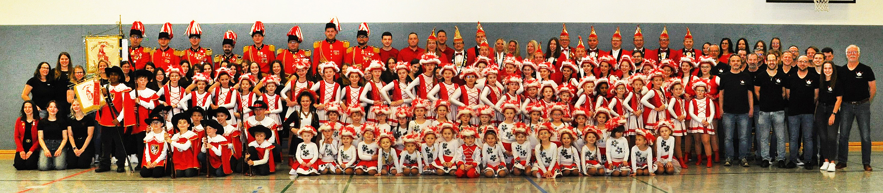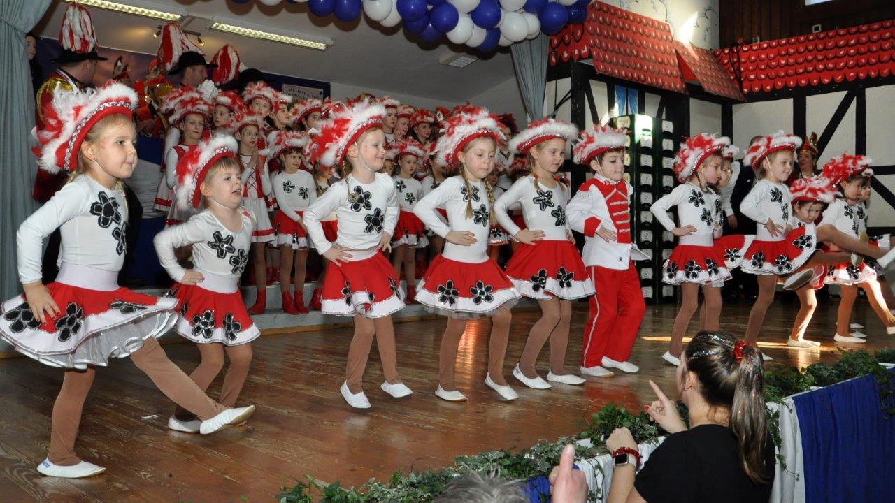 Und auch die Zahl der Aktiven im Alter zwischen drei und 80 Jahren kann sich sehen lassen: Über 120 Kinder, Jugendliche und Erwachsene wirken als Solomariechen, als Synchrontanzpaar, oder in sieben kleinen und großen Tanzgarden, in der großen Prinzengarde, in der Nachwuchs-Prinzengarde „Musketiere“, im Herrenballett „Federwölkchen“, dem Damenballett „K(n)allerperlen und bei den Rotröcken mit.