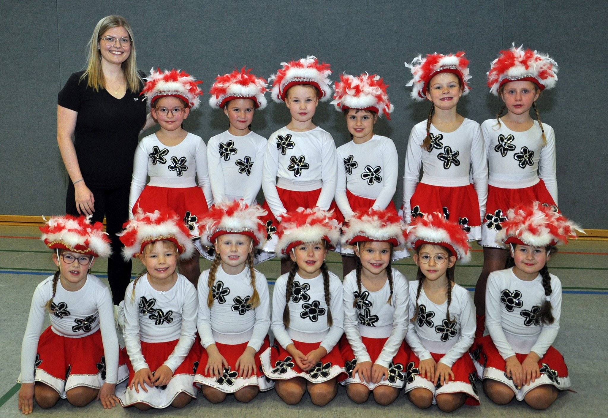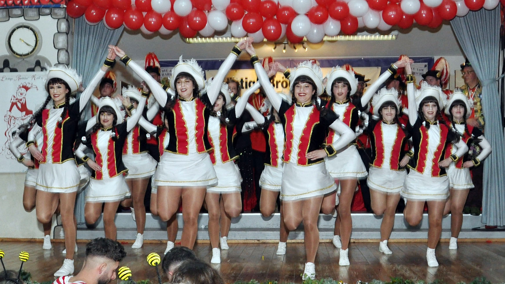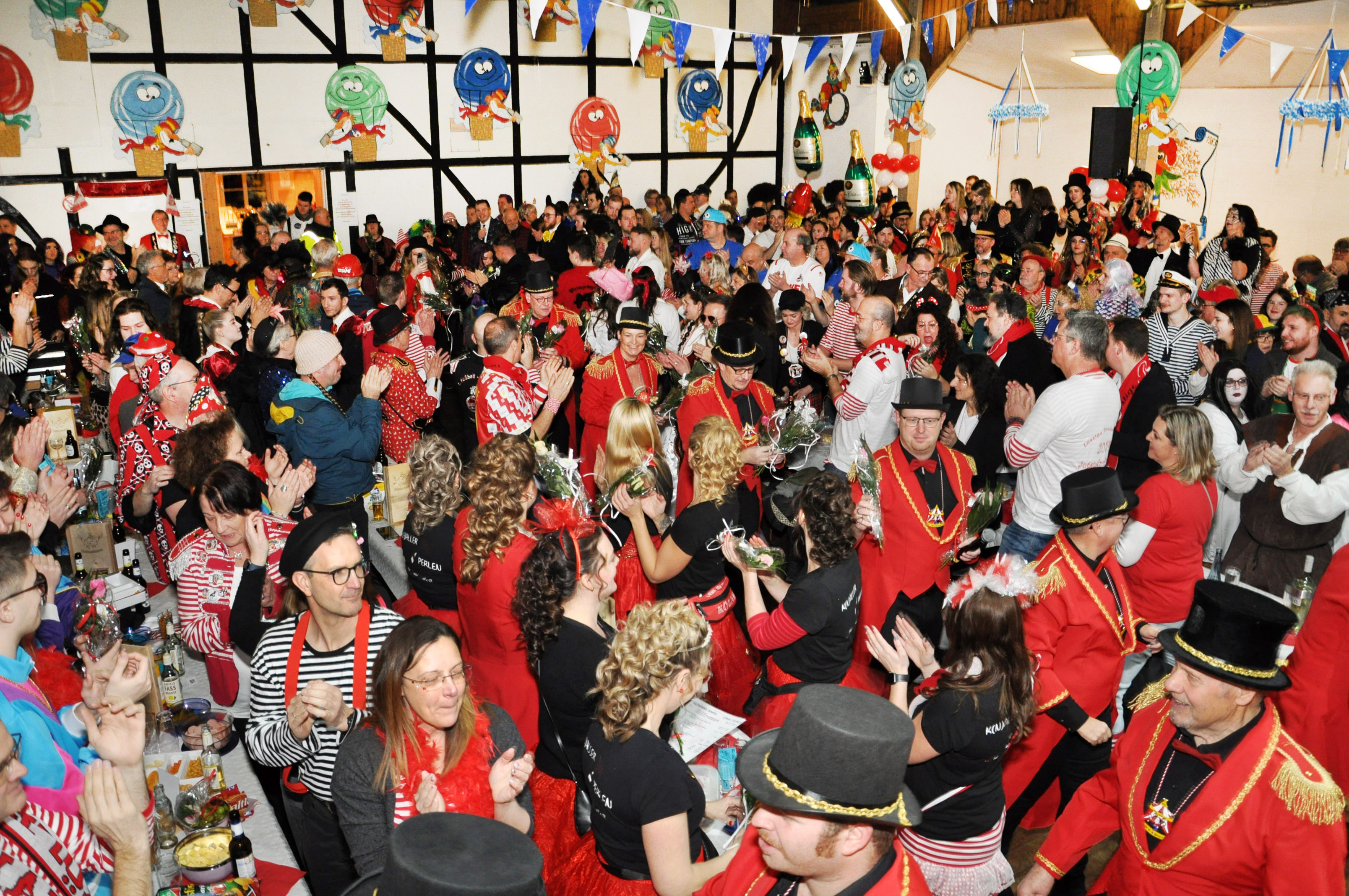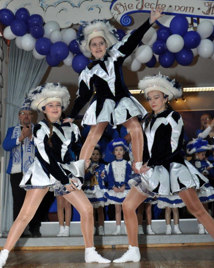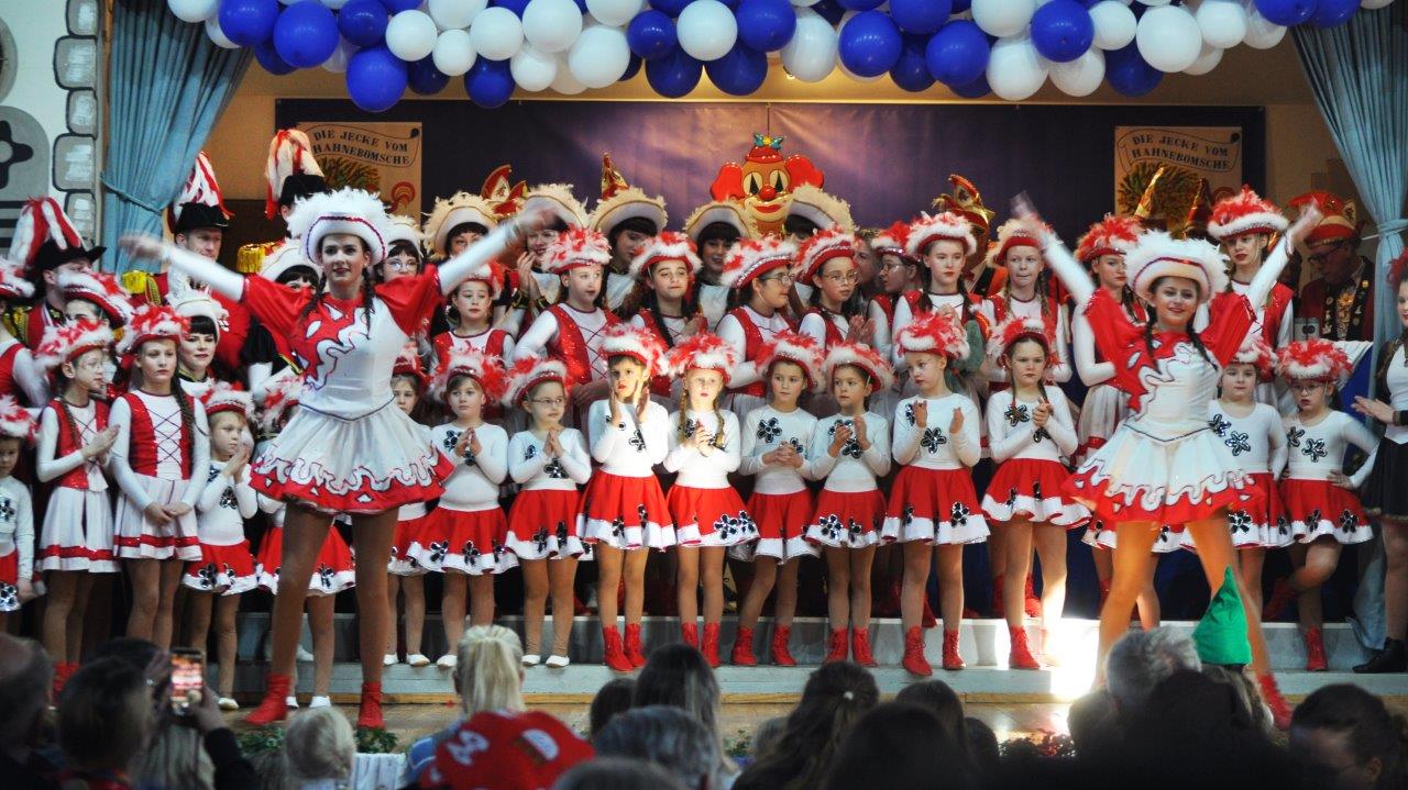 Und auch die Zahl der Aktiven im Alter zwischen drei und 80 Jahren kann sich sehen lassen: Über 120 Kinder, Jugendliche und Erwachsene wirken als Solomariechen, als Synchrontanzpaar, oder in sieben kleinen und großen Tanzgarden, in der großen Prinzengarde, in der Nachwuchs-Prinzengarde „Musketiere“, im Herrenballett „Federwölkchen“, dem Damenballett „K(n)allerperlen und bei den Rotröcken mit.
