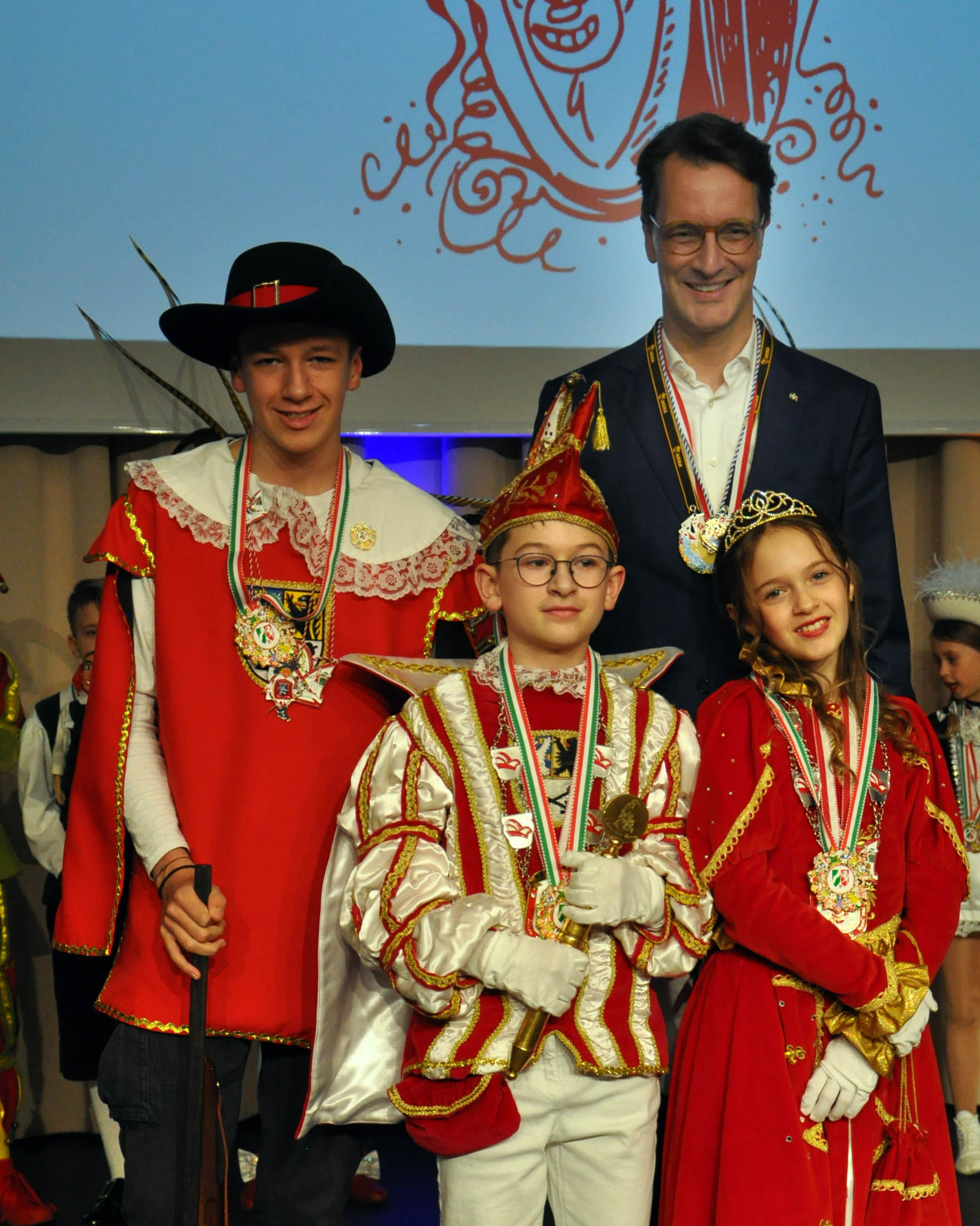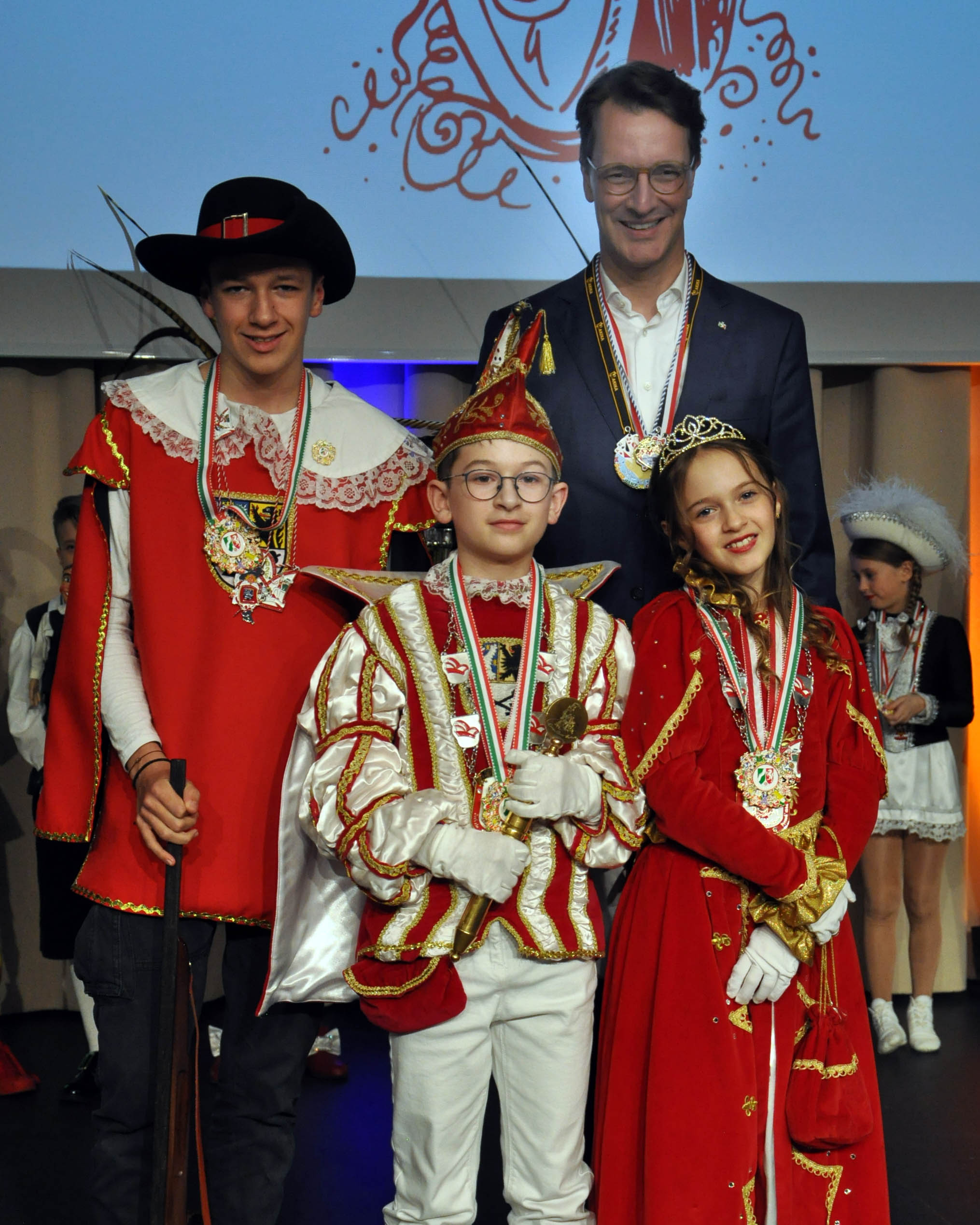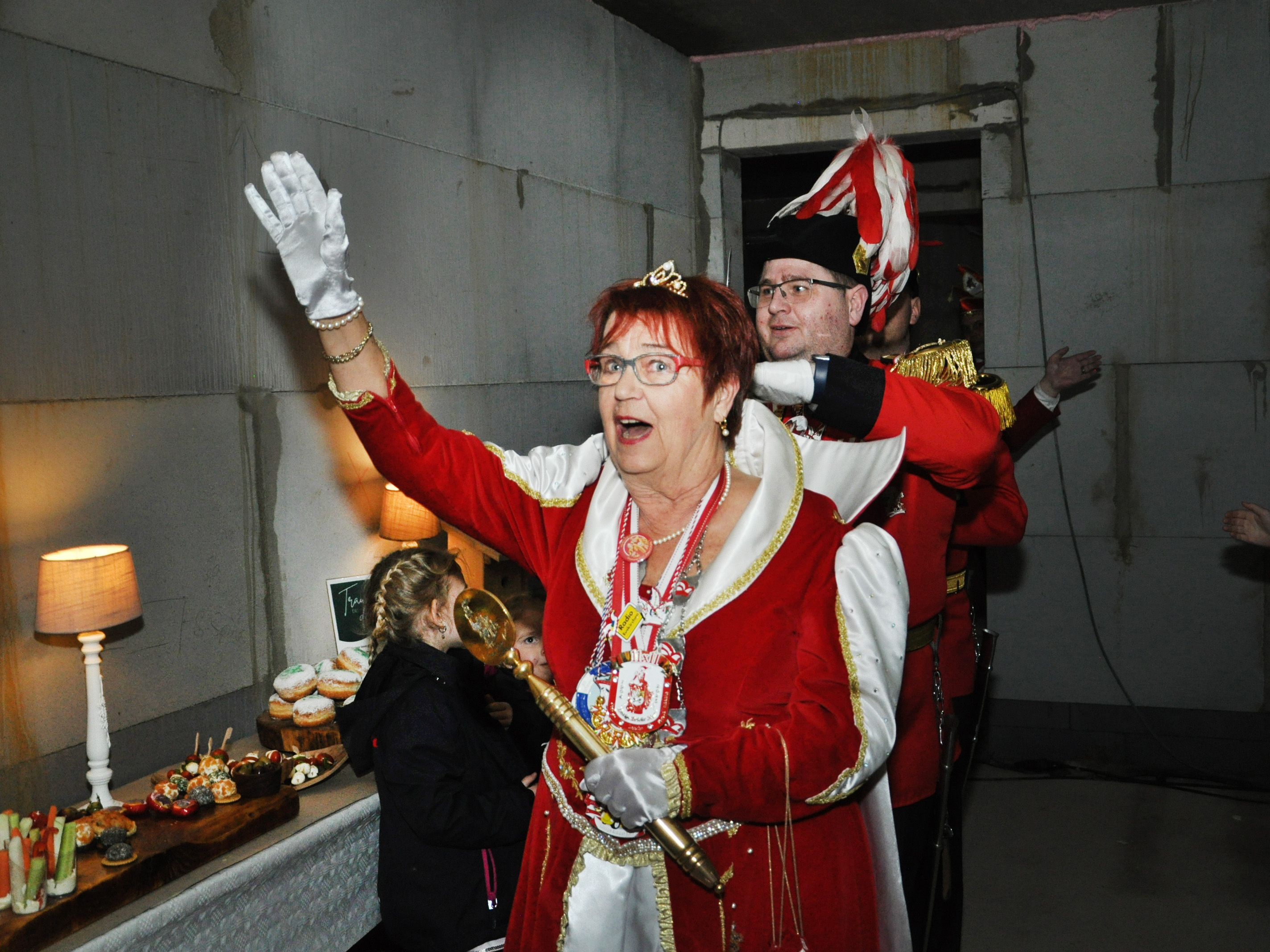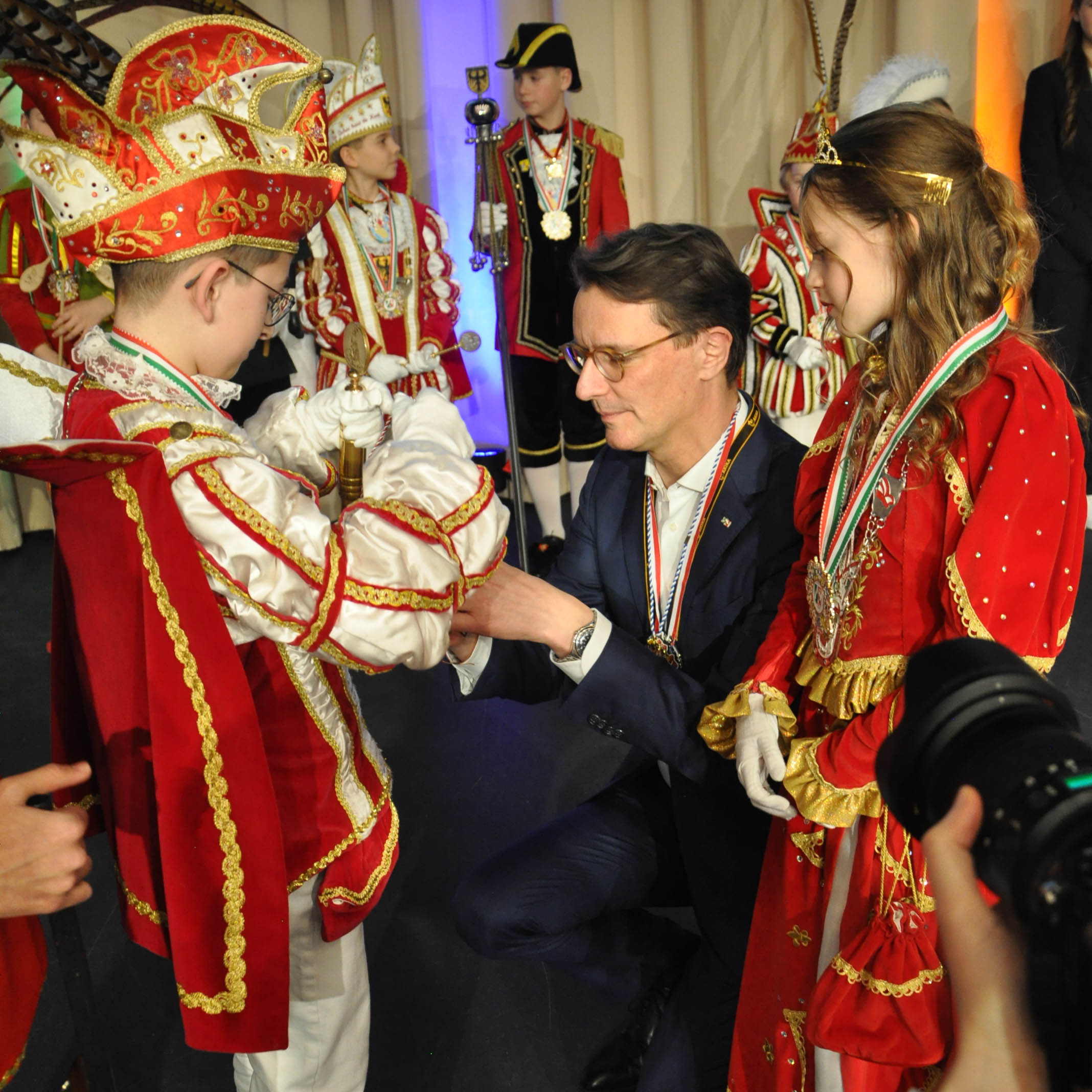 Das Kinderprinzenpaar der „Löstige Bröder“ stand beim Empfang von Ministerpräsident Hendrik Wüst oft im Mittelpunkt – Der Landesvater ließ Kaffee und Kuchen stehen, um zuerst Emils Mutter zu begrüßen.