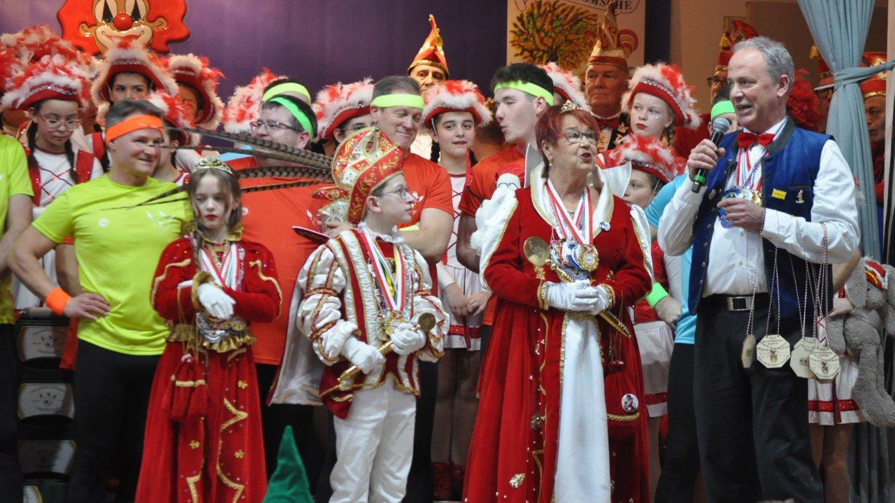 Das kleine Prinzenpaar wurde bei der Kindersitzung der „Löstige Bröder“ von Bürgermeister Hermann-Josef Esser inthronisiert - Der Gardenachwuchs begeisterte – Jugend-Prinzessin Larissa I. mit Blumen verabschiedet - „Fez, Fez, Fez mit Uwe Reetz“