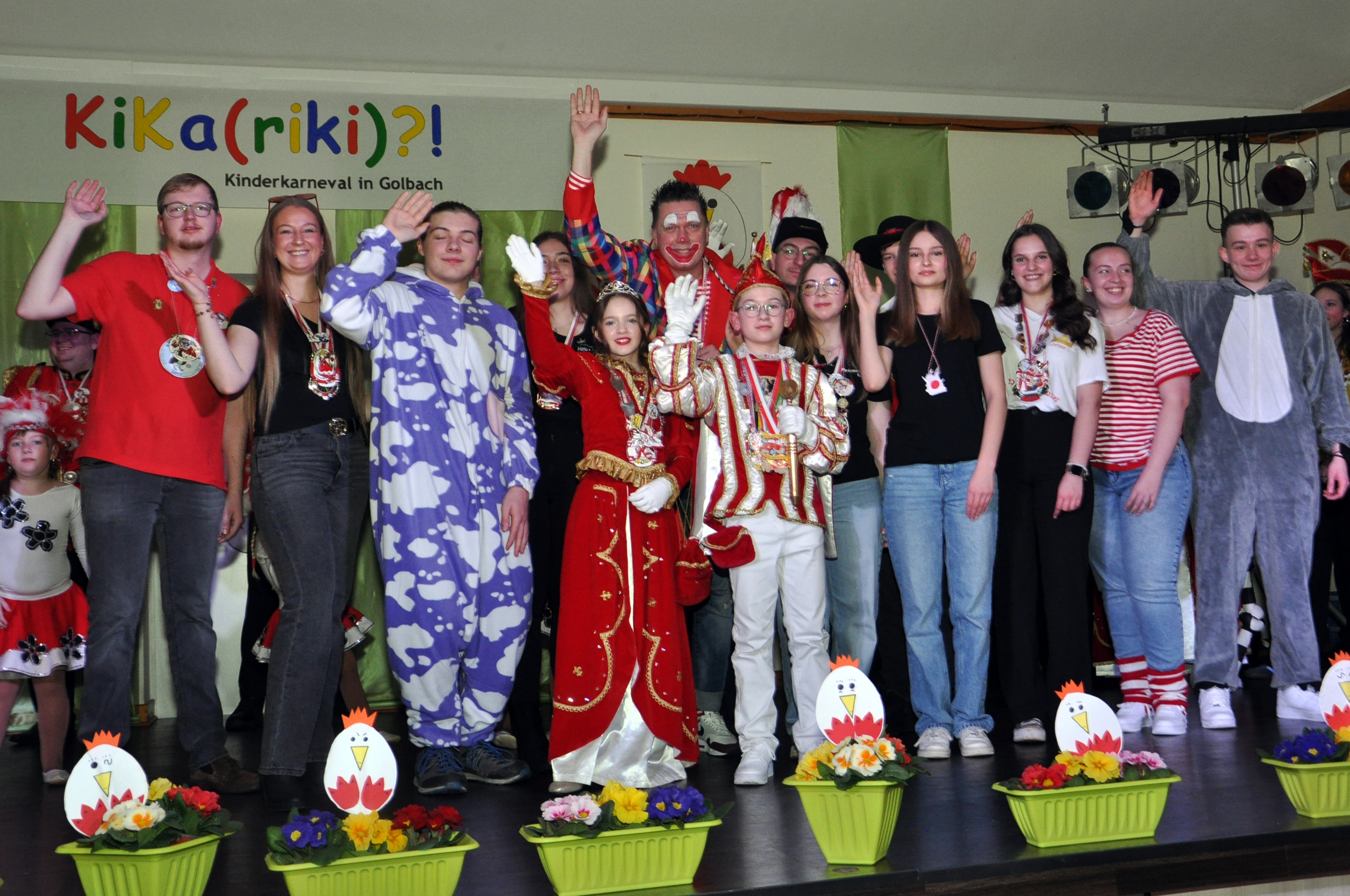 Die „Jecke Krohe“ aus Wahlen kamen mit einem Zweigestirn, weil Prinz Petra I. (Korth) erkrankt war. Und so zogen Jungfrau Erica I. (Fuchs) und Bauer Daniel I. (Korth) mit den Tanzgarden des SC Wahlen ohne Oberhaupt in den Saal ein. Mit Mia Leyendecker präsentierten die „Krohe“ erstmals beim Gemeindeempfang ein vereinseigenes Solomariechen. Die Sötenicher KG „Süetenicher Schlipse“ stellte dem Bürgermeister das Kinderprinzenpaar Luna I. (Josephs) und Chiara I. (Thiesen), sowie das Prinzenpaar Mira I. (Schreiber) und Vanessa II. (Winter) vor. Beim Aufmarsch der Sötenicher mit ihren Tollitäten und Garden wurde es ziemlich eng auf der Bühne, obwohl es in den Reihen der Gardetänzerinnen einige krankheitsbedingte Ausfälle gegeben hatte.