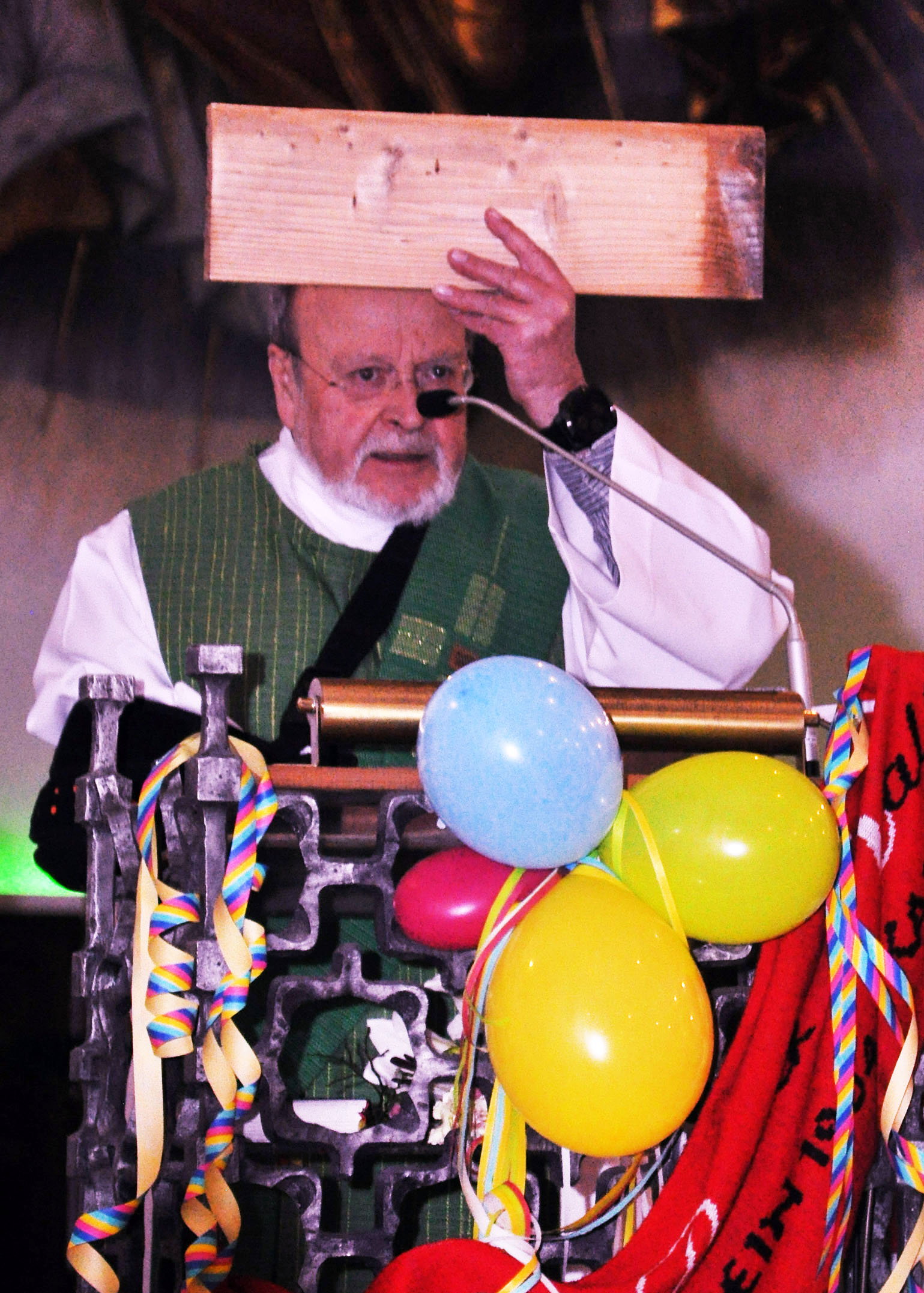 Viele Kirchenbesucher waren kostümiert zum Gottesdienst gekommen, der mit dem Einzug der Geistlichen und den Tollitäten der „Löstige Bröder“ in die Kirche begann. Zur Melodie des Räuber-Songs „Un wenn et Trömmelche jeht…“ sangen die Gläubigen „Un wenn de Kerchejlock schläät, dann ston me all parat…“. Dann begrüße Mundart-Experte und Diakon Manni Lang die Kirchenbesucher auf Eifeler Platt. Damit ließ er den neuen, aus Polen stammenden und die letzten 15 Jahre in Dahlem wirkenden Pfarrer Matthaeus Zuska ratlos zurück. „Ich habe nix verstanden“, gestand Zuska ein.