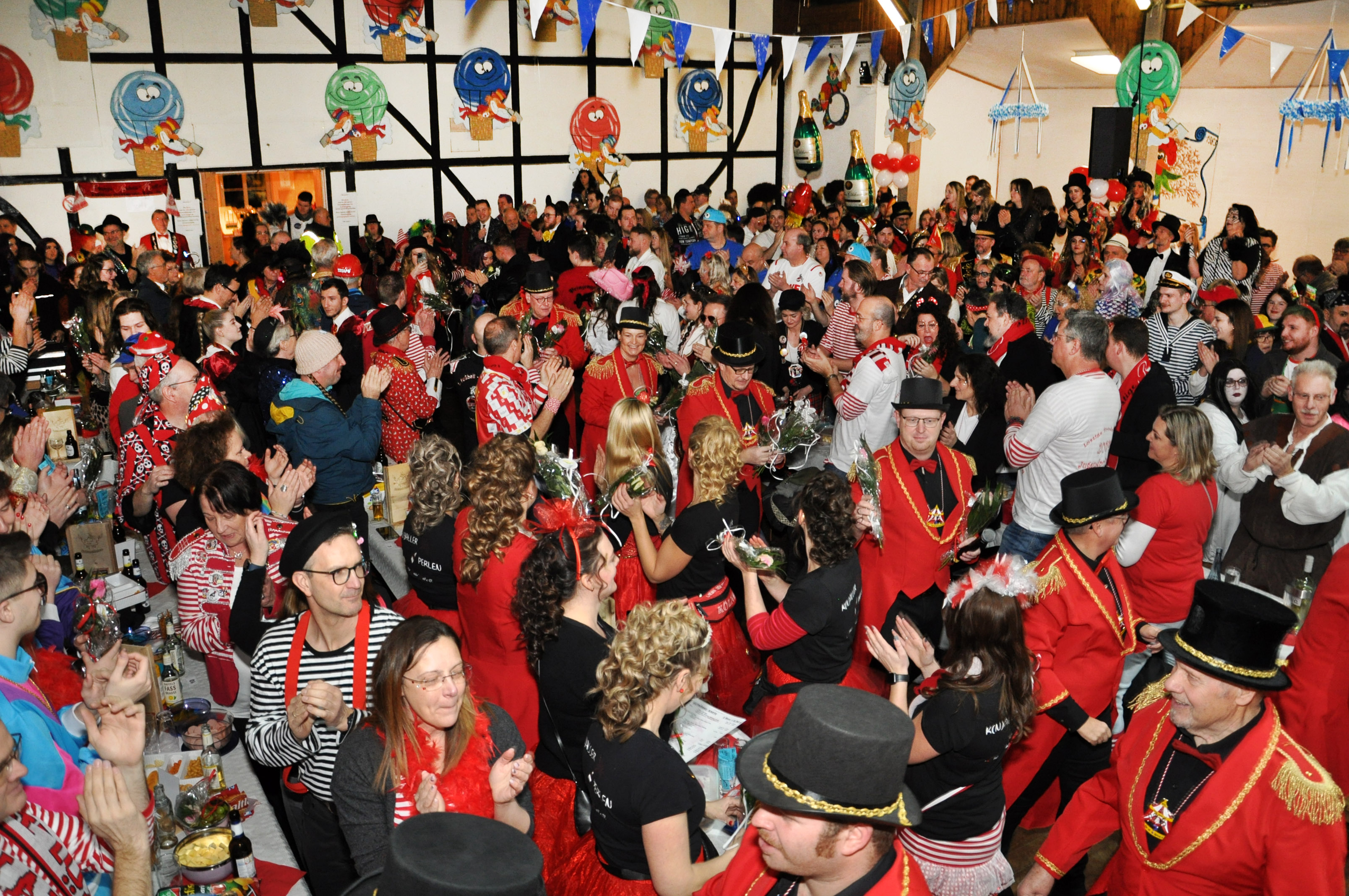 Auch in diesem Jahr müssen die Kaller Karnevalisten für ihre Sitzungen in den Schevener Dorfsaal ausweichen. Der Stimmung tut das jedoch keinen Abbruch. Foto: Reiner Züll