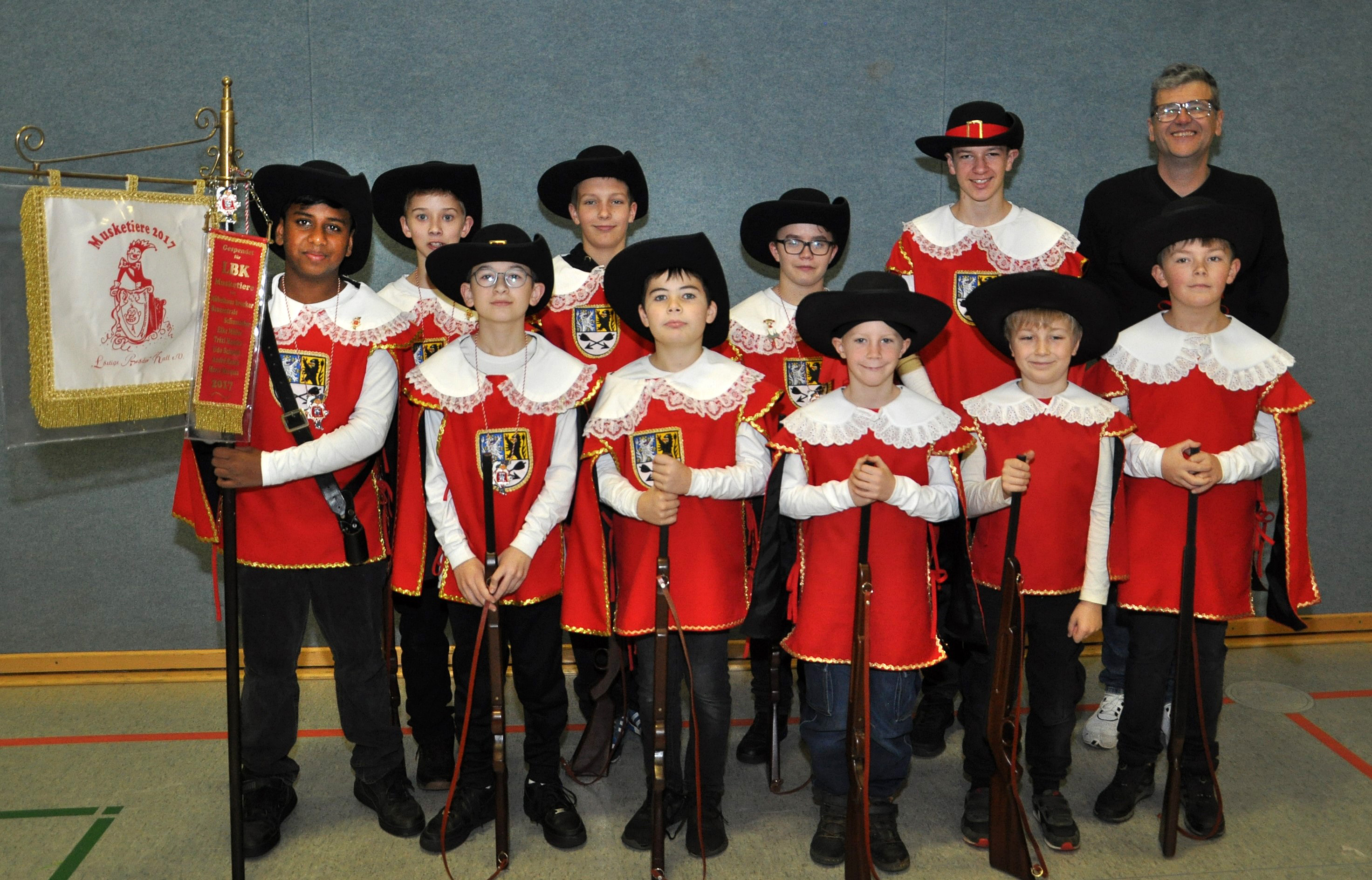 Die kleine Garde „Musketiere“ sichert den Nachwuchs der großen Prinzengarde. Die Truppe hört auf das Kommando von Markus Walker. Foto: Reiner Züll