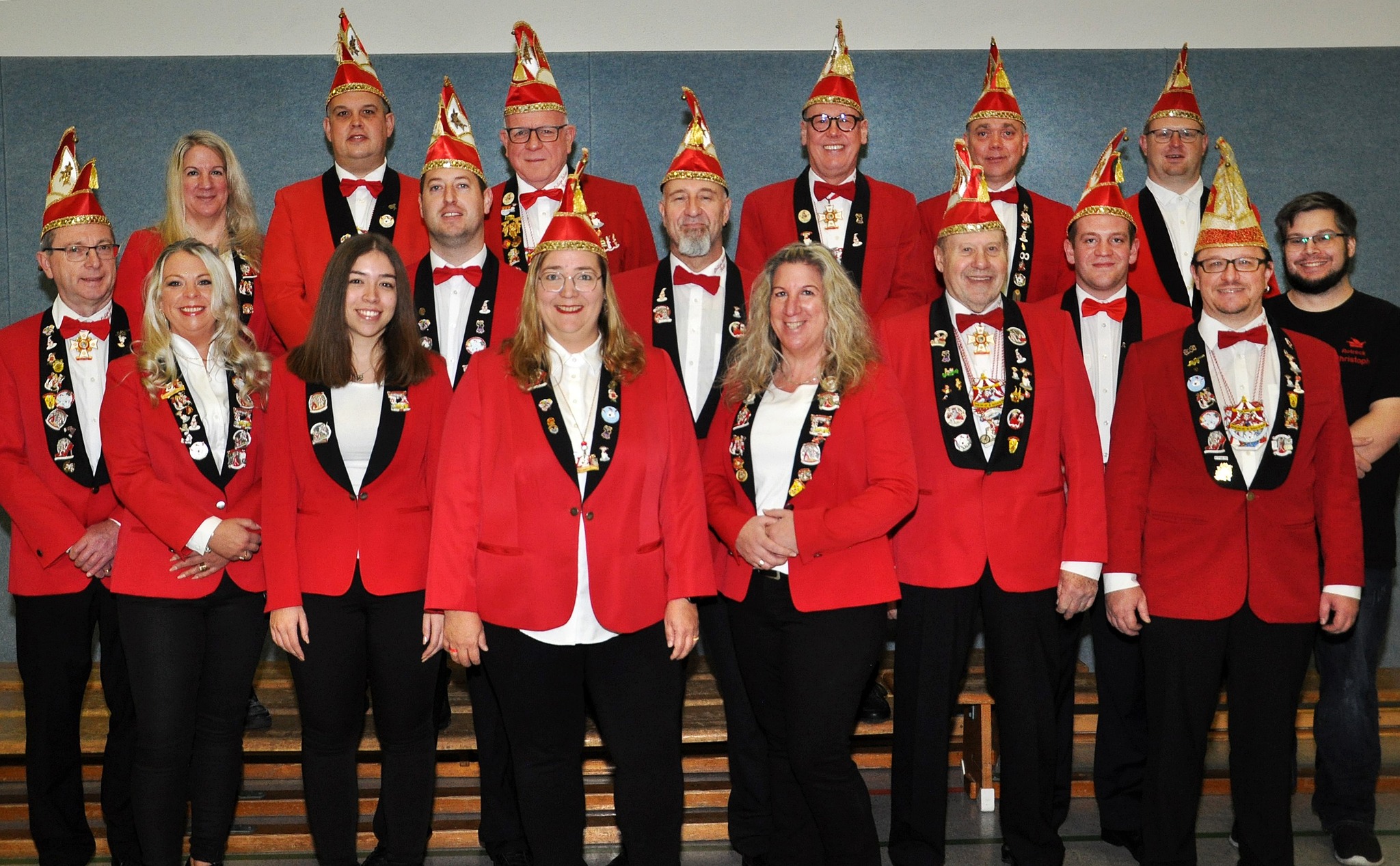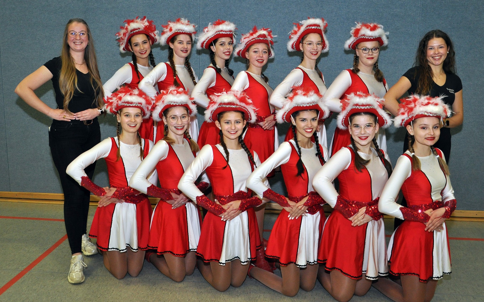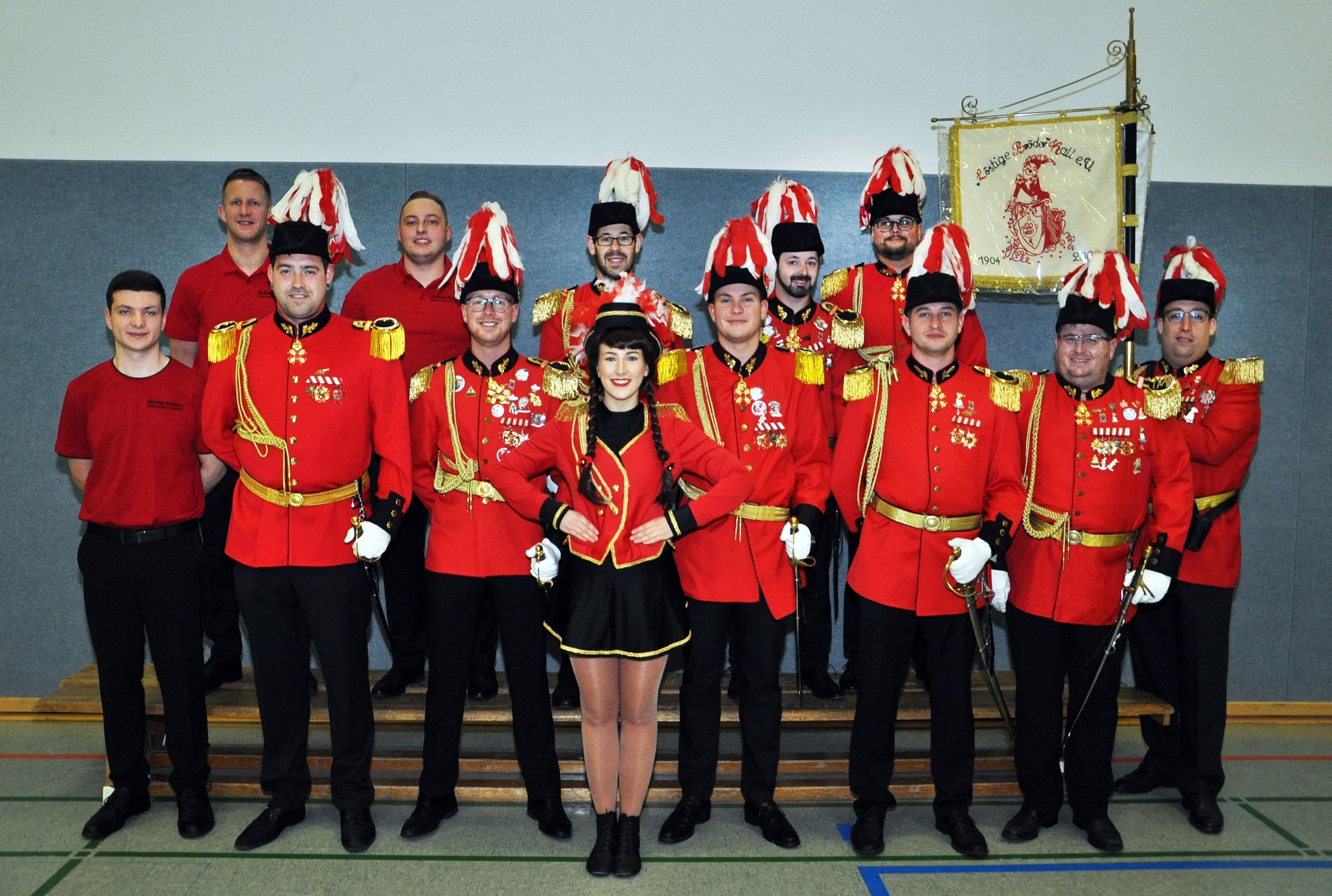 Und auch die Zahl der Aktiven im Alter zwischen drei und 80 Jahren kann sich sehen lassen: Über 120 Kinder, Jugendliche und Erwachsene wirken als Solomariechen, als Synchrontanzpaar, oder in sieben kleinen und großen Tanzgarden, in der großen Prinzengarde, in der Nachwuchs-Prinzengarde „Musketiere“, im Herrenballett „Federwölkchen“, dem Damenballett „K(n)allerperlen und bei den Rotröcken mit.