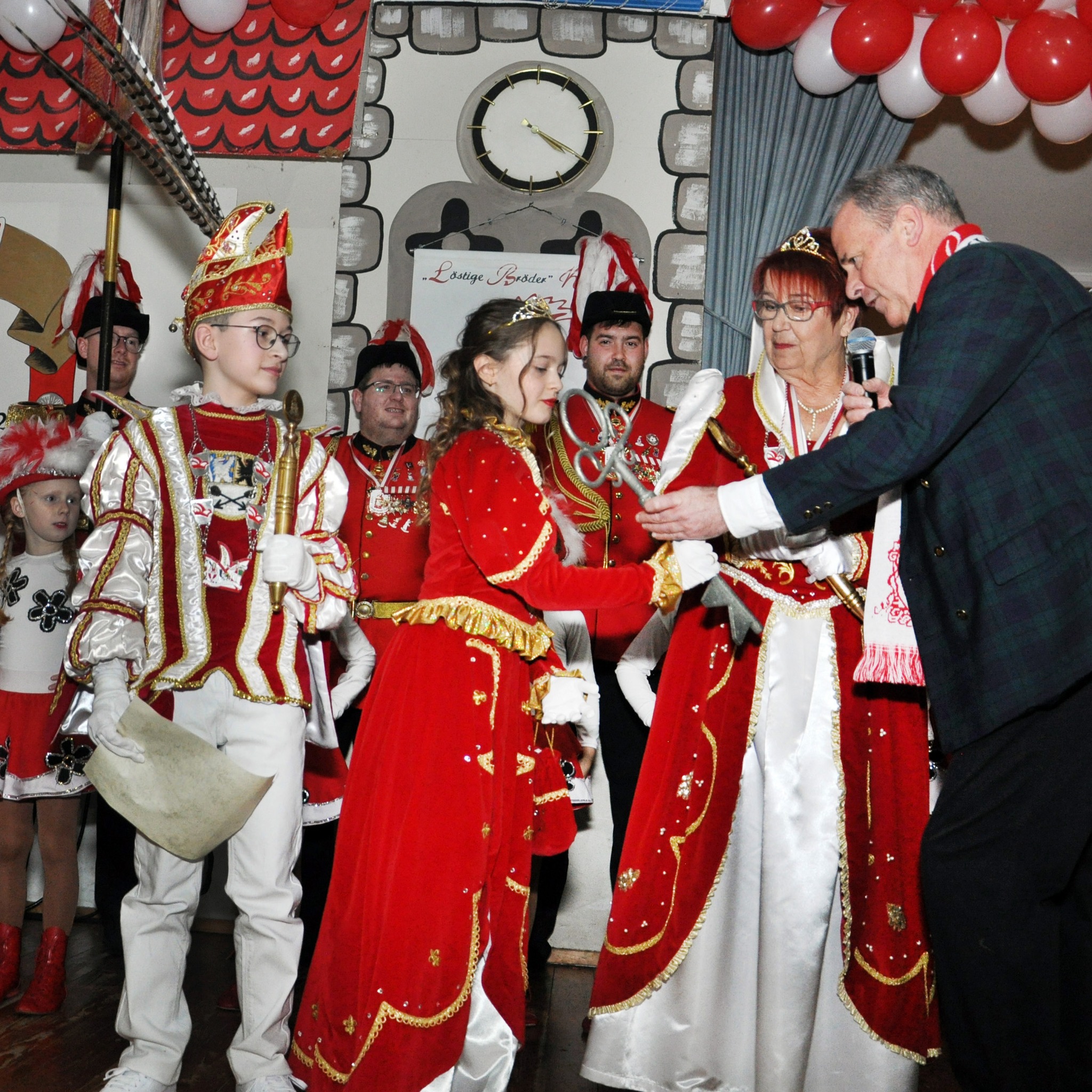 Kall - Im Saal „Op de Kier“ in Scheven veranstaltete der Kaller Karnevalverein „Löstige Bröder“ seine Kindersitzung, in dessen Verlauf das neue Kinderprinzenpaar, der zwölfjährige Emil I. (Sträußl) und die zehnjährige Anika III. (Pleuß), von Bürgermeister Hermann-Josef Esser inthronisiert wurde. Zuvor war die Vorjahres-Jugendprinzessin Larissa I. (Mertens) verabschiedet worden. Die Vorstandsmitglieder Ina Teuber und Jennifer Herr hatten eine Sitzung organisiert, die sowohl den Kindern als auch den Erwachsenen im voll besetzten Saal gefiel.
