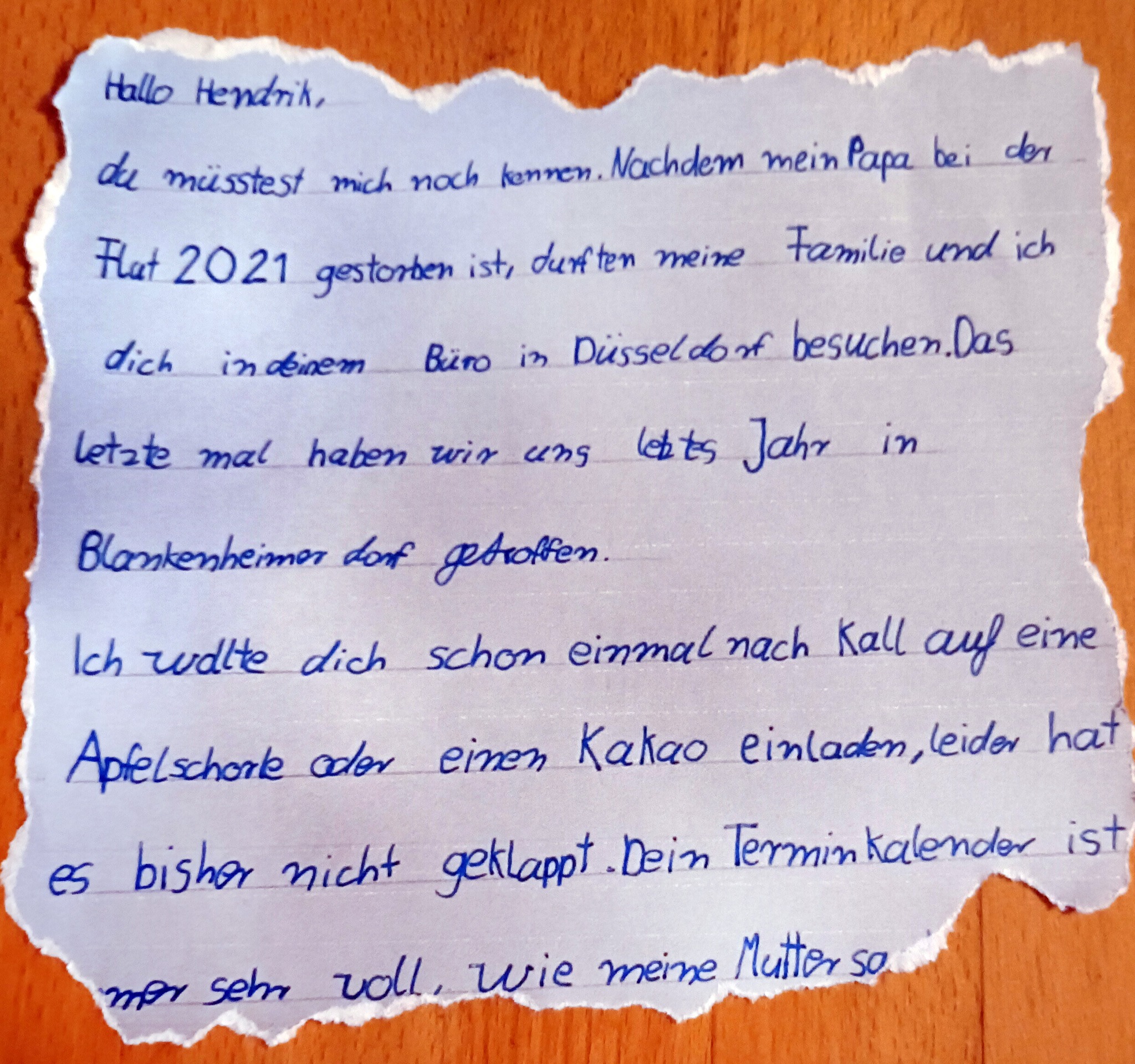 Dafür wollte sich Kinderprinz Emil Sträußl jetzt revanchieren. Er schrieb dem Landesvater kurzerhand einen Brief und lud ihn zu seiner Proklamation nach Scheven ein. Mit einem freundschaftlichen „Hallo Hendrik, Du müsstest mich noch kennen“ begann er seinen Brief, und erinnerte Hendrik Wüst: „Nachdem mein Papa bei der Flut im Jahr 2021 gestorben ist, durften meine Familie und ich Dich in Deinem Büro in Düsseldorf besuchen. Das letzte Mal haben wir uns in Blankenheimerdorf getroffen“, so der Zwölfjährige.