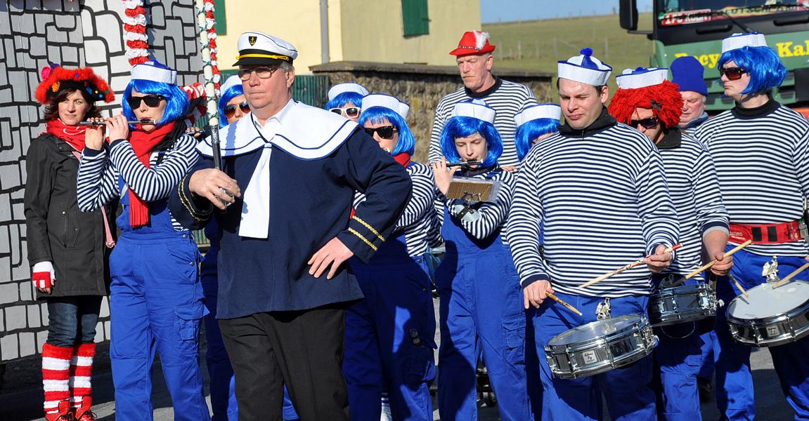 Den Schlusspunkt des Zuges setzen die Musikkapelle Kall, die Prinzengarde und die beiden Tollitätenwagen sowie das „Beiboot“ des personenstraken Prinzengefolges.