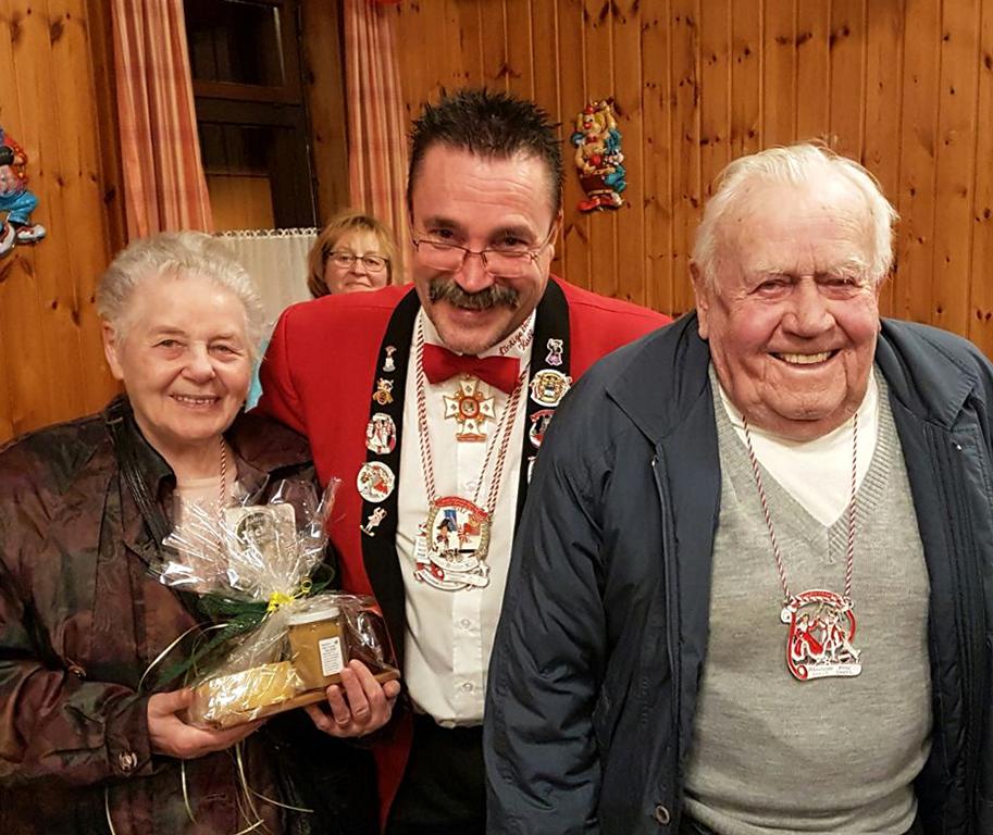 Unter einem banalen Vorwand hatte Dieter Hermanns am Donnerstagabend seinen Vater Willi und Gattin Fine in die Gaststätte Gier gelockt, wo die Gratulantenschar der Löstige Bröder sich im Saal „verschanzt“ hatte.