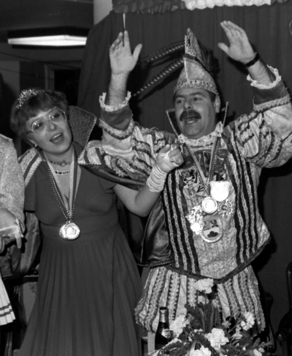 Session und Prinzenpaare 1984/1985 Prinzenpaar: Prinz Alfi I. (Meyer) und Prinzessin Karin I. (Wilden)Kinderprinzenpaar: Markus Schröder und Michaela GoebelDer Gesellschaftsorden der Session 1985. Repro: Reiner ZüllBilder der Session: