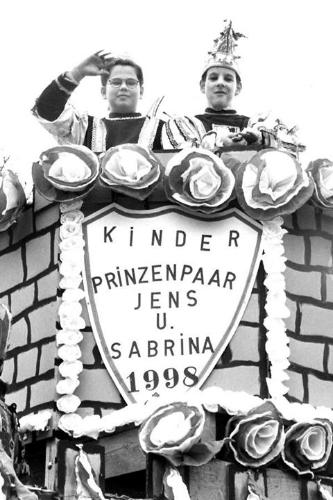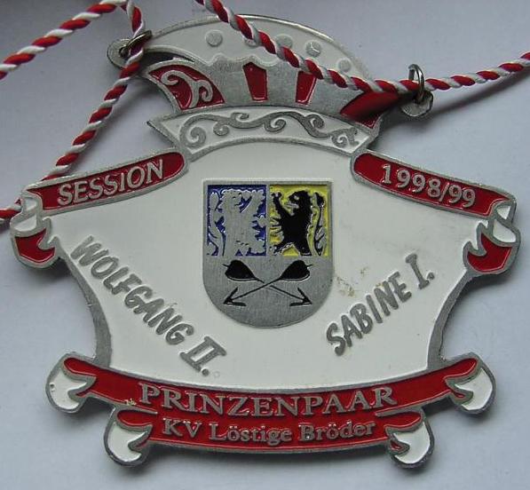 Session und Prinzenpaare 1997/1998 Prinzenpaar: Prinz Wolfgang III. (Herr) Prinzessin Sabine I.Kinderprinzenpaar: Jens Walber und Sabrina LeyDer Gesellschaftsorden der Session 1998. Repro: Reiner Züll Bilder der Session: