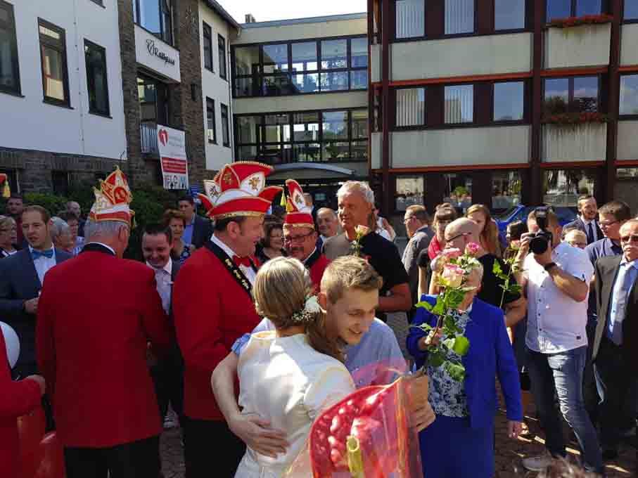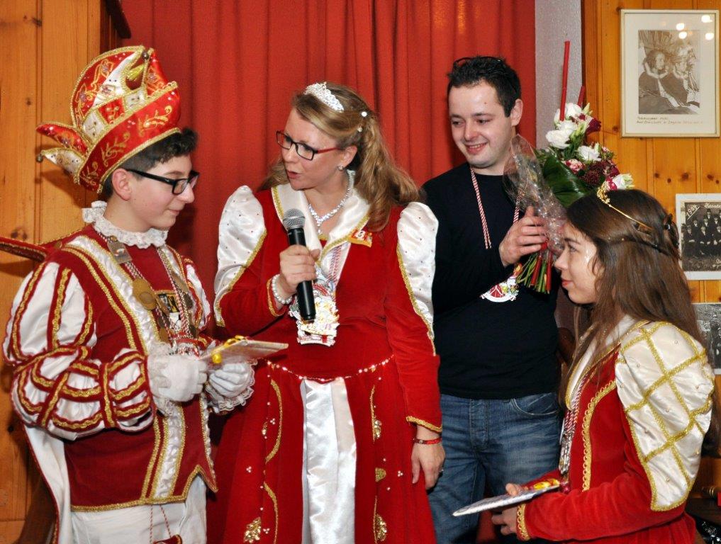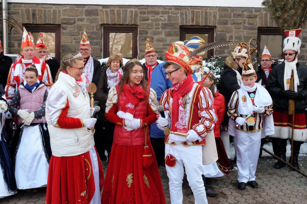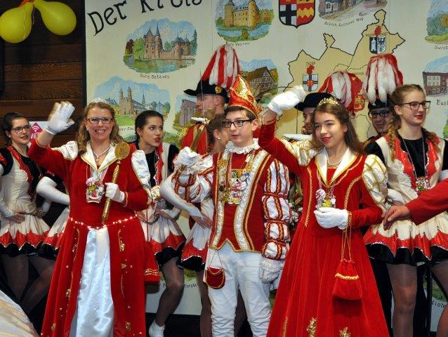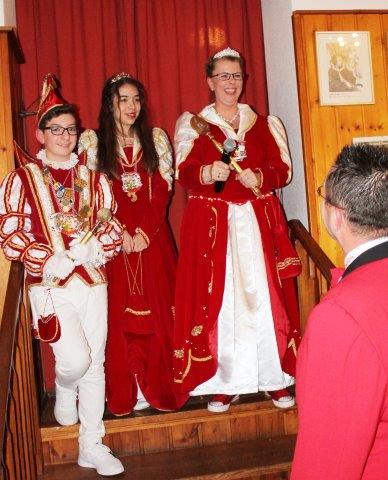 Session und Prinzenpaare 2017/2018 Prinzessin: Claudia I. (Blum)Kinderprinzenpaar: Robin I. (Sträußl) und Hanna I. (Goebel)Proklamation der Kaller Prinzessin Claudia I. (Blum) bei der Kostümsitzung des KV "Löstge Bröder" Kall. Foto: Reiner ZüllFühren die Kaller Jecken durch die Session 2018: Das Kinderprinzenpaares Hanna I. (Goebel) und Robin I. (Sträußl) mit dem neuen Ortsvorsteher Stefan Kupp. Foto: Reiner Züll Bilder der Session:
