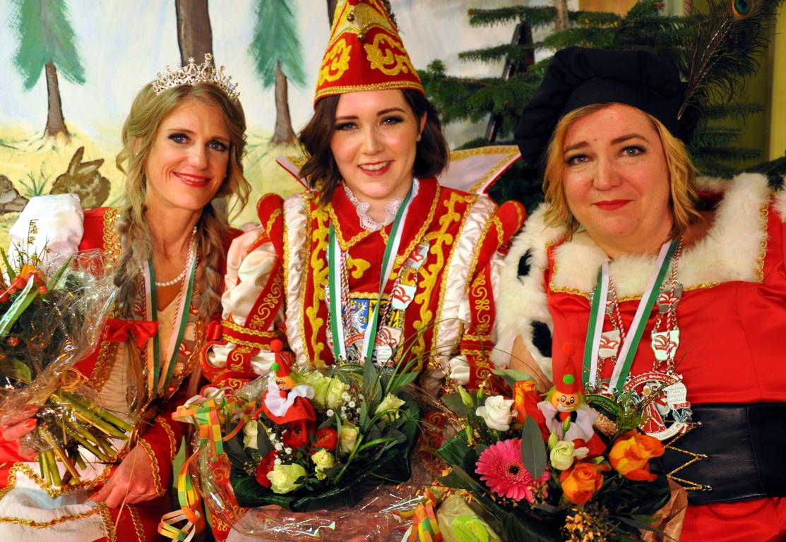 Damen Dreigestirn: Prinz Ina I.(Teuber-Künnecke), Jungfrau Anika I. (Engels) und Bauer Simone I. (Saßmann)