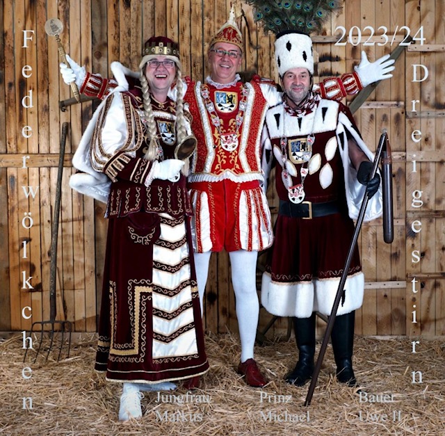 Dreigestirn: Prinz Michael (Schulz), Bauer Uwe (Walber) und Jungfrau Markus (Walker)