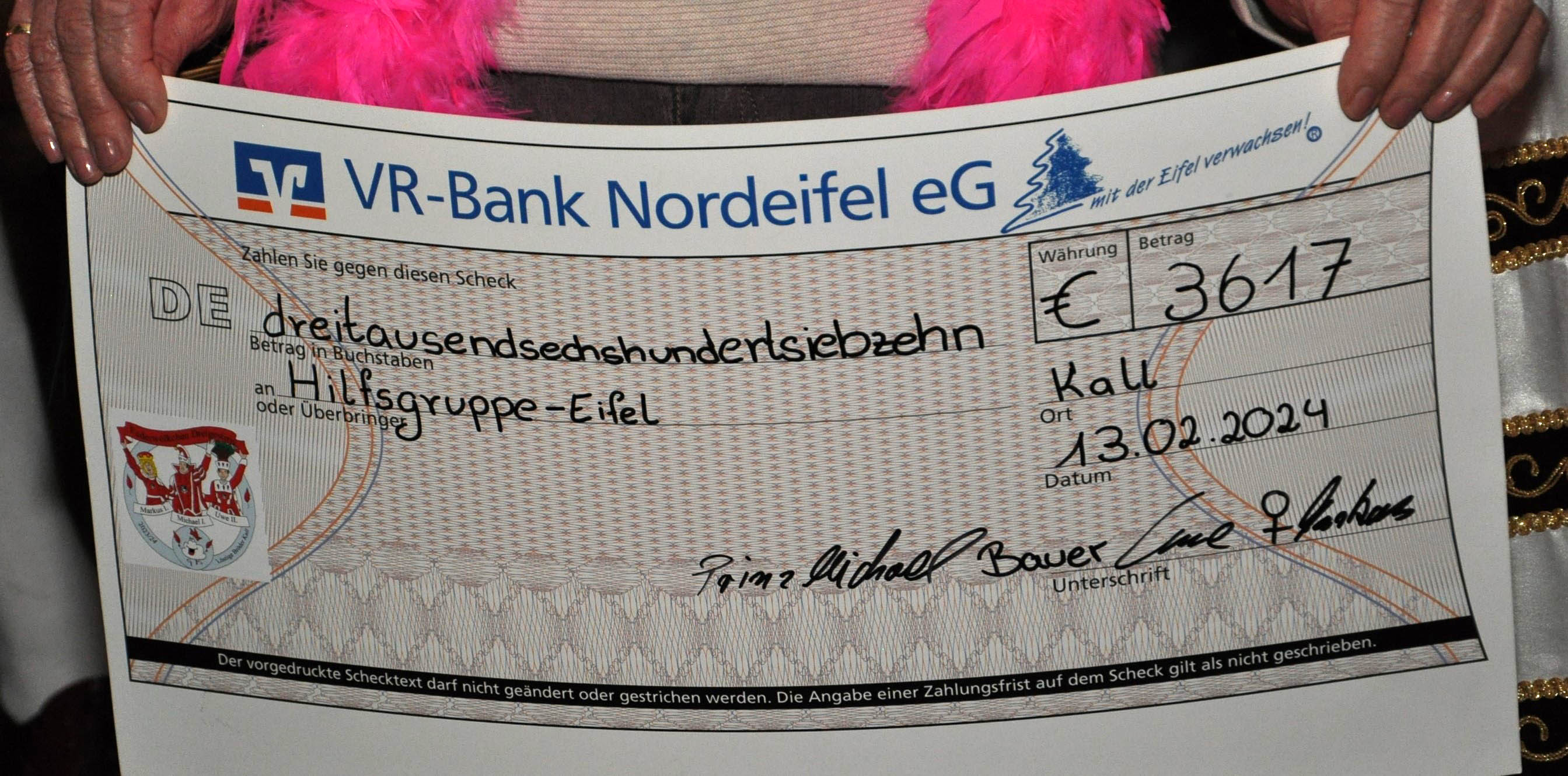 Karnevalsausklang des KV Löstige Bröder und Übergabe des Spendenschecks durch das Dreigestirn. Foto: Reiner Zül